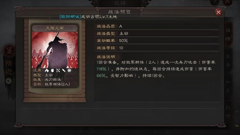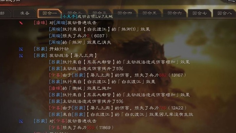 第四次调整新增屠几上肉对吕蒙战法的增益及天降火雨效果。