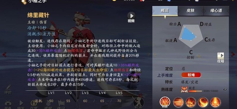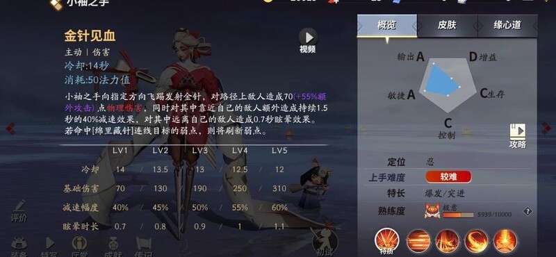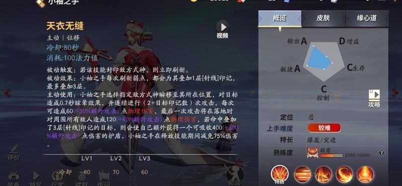 小袖之手是打野式神,曾为幻神级别,虽遭削弱退出ban位,但单人抓取能力依旧出色。
