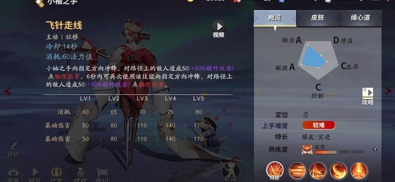 小袖之手是一技能,主要输出手段,技能说明较长,此处不再详述。