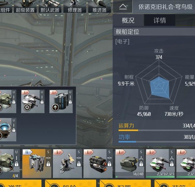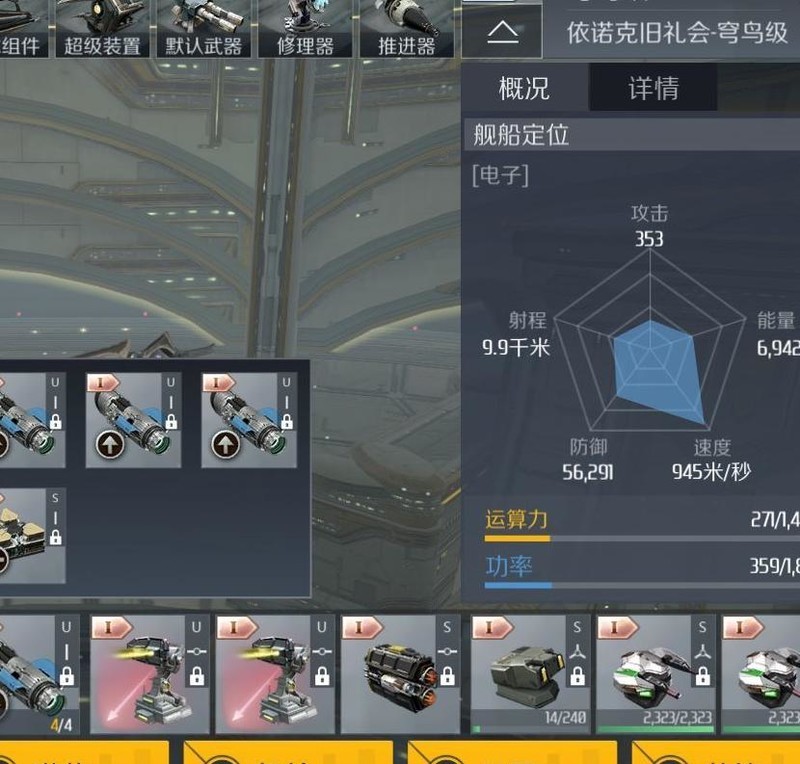 装备槽配置:火控干扰装置、微型离子推进器及小型应急能量注入模块。