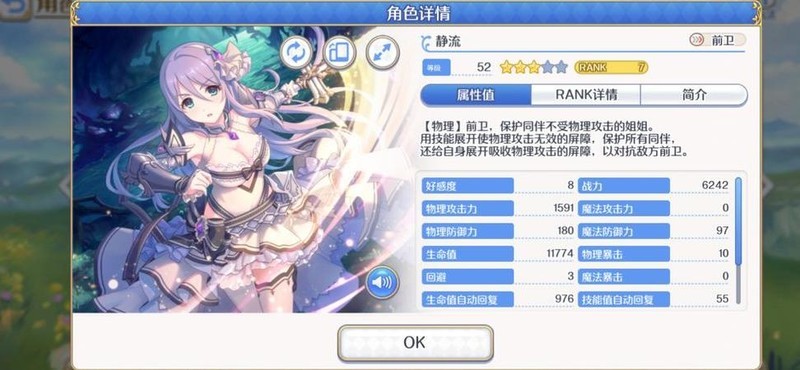 铃奈作为后卫首选,技能必暴击,无视暴击率限制,可打出极高物理单体伤害。