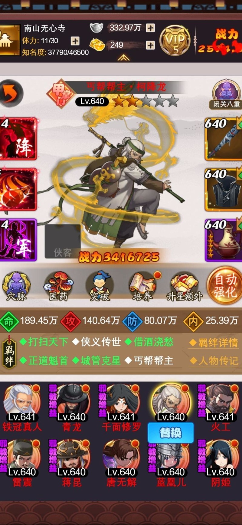 剑侠传奇中,丐帮帮主柯降龙凭借开局红心法与强力羁绊,成为前中期最强正派首选。降龙心法搭配打狗棍法,攻防兼备,堪称战士版蓝凰儿,铁罐之名实至名归。