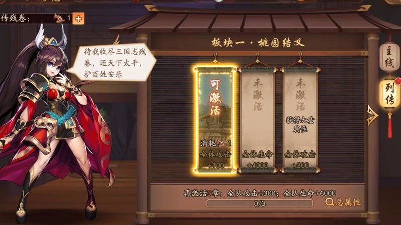 刘备传作为首个关卡,环节较为简洁,以确保良好的入门体验。完成该列传后,可获得列传残卷,用于激活三国志-列传系统,进而提升角色属性,为后续挑战奠定基础。