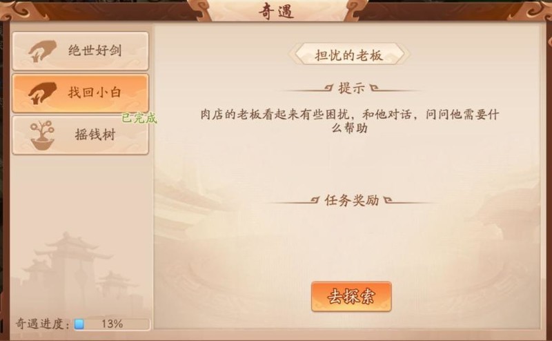 奇遇任务需玩家主动探索,如寻找特定道具或与地图中的NPC互动完成目标。为便于新手熟悉玩法,首关设有引导提示,帮助玩家顺利上手操作流程。