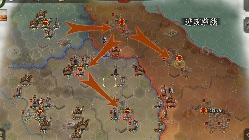 本关需坚守三处要地,歼灭四支主力部队及共三十二支敌军。开局优先向右推进,确保在三至四回合内攻下首个红圈城池以触发剧情。初始城与右侧黄圈城为五级城,前期仅初始城可补充兵力。中途中部三级城可能失守,需依行进路线回防,再稳步推进。黄圈位置藏有三张步兵指挥官卷轴。