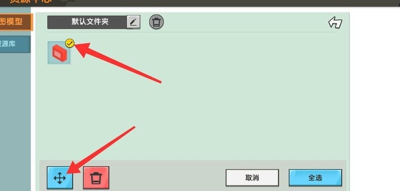 点击默认文件夹,将开始游戏道具移至资源库以制作插件。