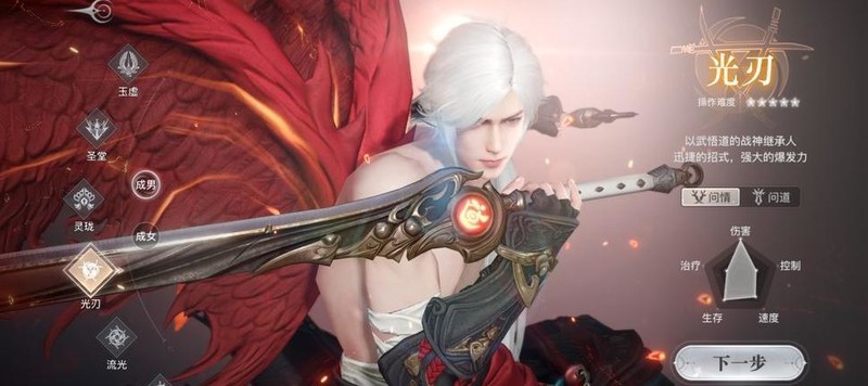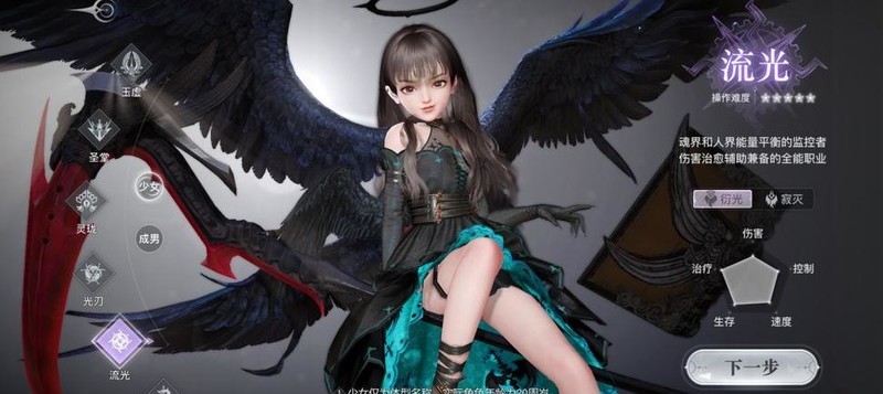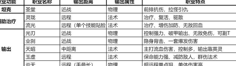 游戏现有八大职业,圣堂担任坦克;流光与灵珑主司辅助治疗;输出方面,光刃和业刹为近战,天昭居中距离,玉虚与炎天则负责远程攻击。