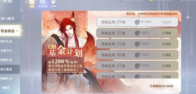 30级至69级期间可领取总计9888绑定玉,升级越快获取越多。这些绑定玉可用于购买青鳞之野爬塔礼包及每周必备道具,性价比极高,合理利用能显著提升游戏体验。