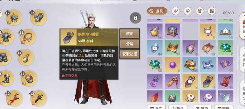 绝世令·朝雾建议暂不兑换50级绝世,可积攒资源直接换取60级绝世。