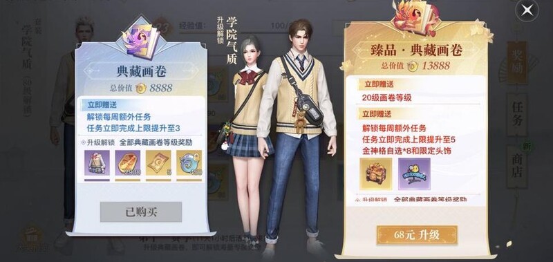 画卷分为两个档位:30元的典藏画卷和98元一次性获取的臻品·典藏画卷。主要区别在于后者包含限定外观和金色神格等专属内容。预算有限、追求性价比的玩家可选择30元档;若钟情于全套外观收集,推荐入手臻品版本;追求极致体验或收藏的玩家可直接选择98元档,权益更全面,满足外观党与资深玩家的需求。