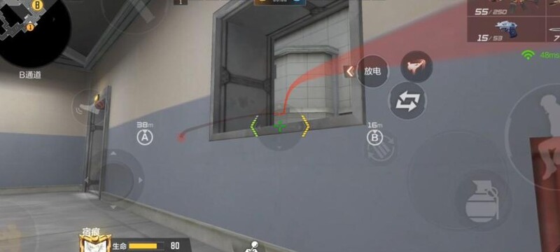 在异域小镇B包点有一个实用技巧,适用于进攻或回防B下水道的玩家。站在B连接通往下水道出口位置,将准星对准图示第一个窗户下方第一条竖线的拐角处,观察投掷物轨迹,当抛物线形成直线转折瞬间投出即可精准命中。