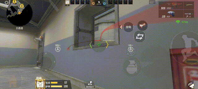 上期提到的燃烧瓶无法伤及B门上方老六的问题,本期首个点位将为大家解决。抵达B区房间后,利用B小窗位置,将准星对准图中所示突出石砖处,观察抛物线轨迹,当其转向左侧并出现拐角时立即投掷,即可实现精准覆盖,完成二箱上门起火效果。