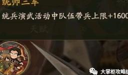 拥有双五福聚财与统帅三军两项天赋技能,每项均有详细说明可供查阅。技能需提升至一星方可升级,通常通过消耗三张门客帖实现天赋升星,具体方式较为统一。