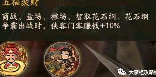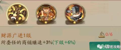 门客的副业大多相同,唯最后一个例外。首个技能财源广进可提升所管理商铺的收益速度,按百分比增加盈利效率。