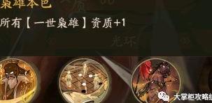 吕布拥有三个光环,其中枭雄本色与一代宗匠类似,可使所有一世枭雄门客的资质提升1点,此为一世枭雄专属光环技能。