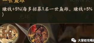 每招募一位一世枭雄,赚钱能力提升5%,最多可招募六位,累计最高提升30%。