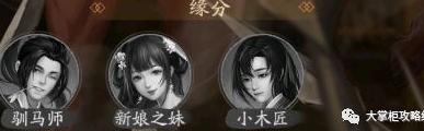 吕布拥有三位可提升其赚钱速度的缘分伙伴。第一位驯马师可通过幸运商店的门客帖兑换获取;第二位新娘之妹参与及笄之礼活动即可获得;第三位小木匠则需通过吉祥当铺活动兑换。