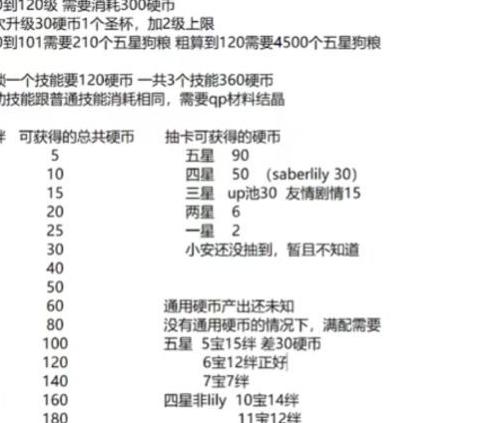 120级实装后,基础属性的提升非常显著,但升级过程消耗巨大。其中最核心的资源是硬币,而后续新增的三个被动技能解锁同样需要大量硬币,以及QP、素材和结晶等资源,相关详细数据已整理成表,可供参考与规划。对于投入感情较多的玩家而言,若想将从者升至120级,需提前了解整体成本。以100级升到120级为例,大约需要4500个五星狗粮。按每次狗粮副本稳定产出7个计算,需通关约642次,累计消耗体力高达25680点,相当于160个金苹果的量,这还尚未计入其他材料与QP的消耗。尤其关键的是,硬币为不可替代资源,若储备不足,将无法完成等级提升或被动技能解锁。以五星从者为例,只有满宝且拥有11级羁绊的情况下,才可获得550枚硬币,仅够在达到120级后解锁一至两个被动技能。若是三宝或二宝的五星从者,因硬币获取量更少,基本不具备升至120级的可行性,建议谨慎评估投入产出比后再做决定。