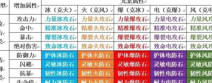 符石按等级分为橙、紫、蓝三类,品质则有极品、稀有与普通之分。其属性涵盖火、电、风、爆、冰五种类型,功能上划分为攻击与防御两大类别。攻击类符石包含四种形态:提升命中的精准、增强攻击力的力量、提高暴击率的暴裂以及增加绝杀伤害的致命;防御类符石同样具备四种形态:增加闪避的灵敏、提升防御力的护体、强化抗暴能力的韧性以及提高生命值的耐力,各具独特效果。