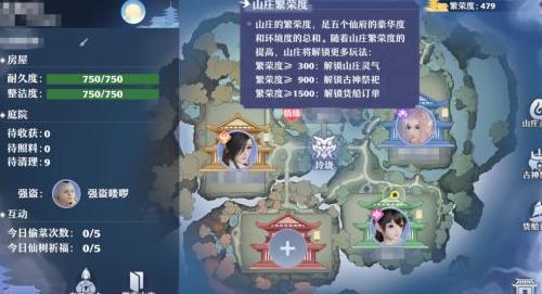 山庄的繁荣程度取决于仙府的豪华与环境水平,这两项指标通过室内室外的家具陈设与装饰布置来提升,精心搭配各类家居饰品可有效增强仙府的整体品质与兴盛氛围。
