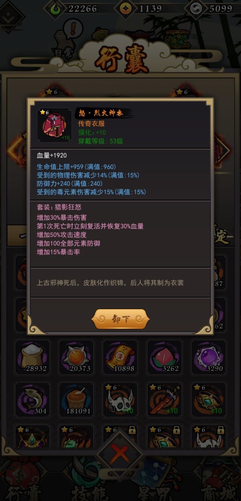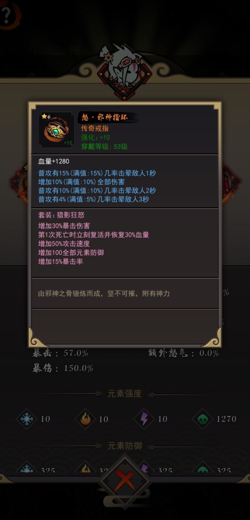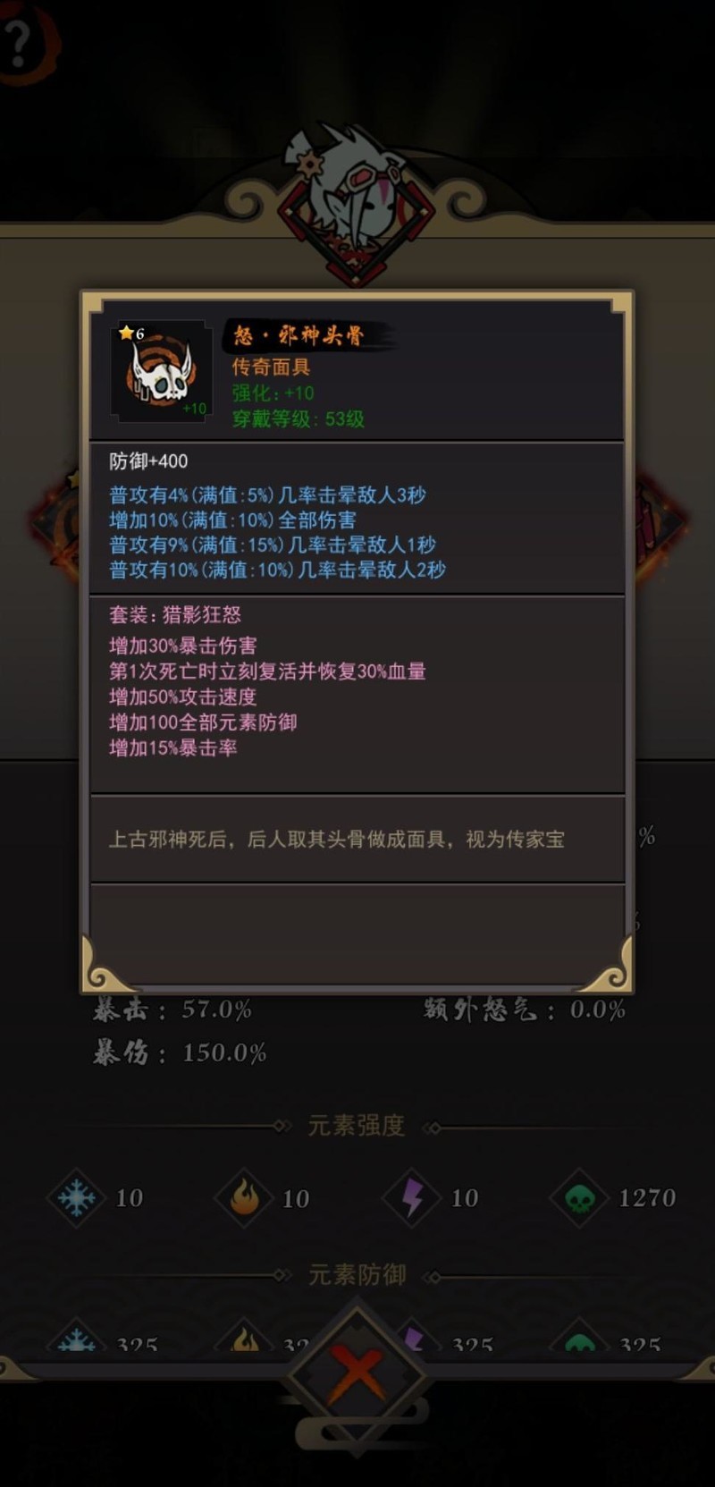 30%爆伤大幅提升暴击伤害,15%暴击率显著增强输出,复活与攻速兼备,搭配100全元素防御,属性全面却显鸡肋。