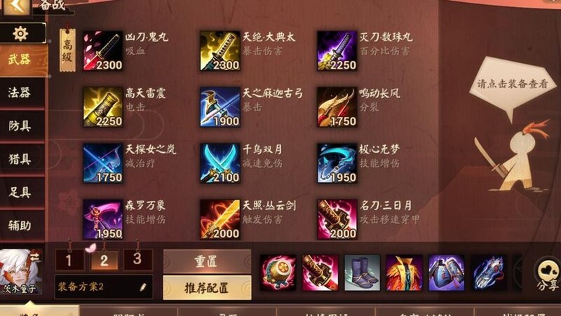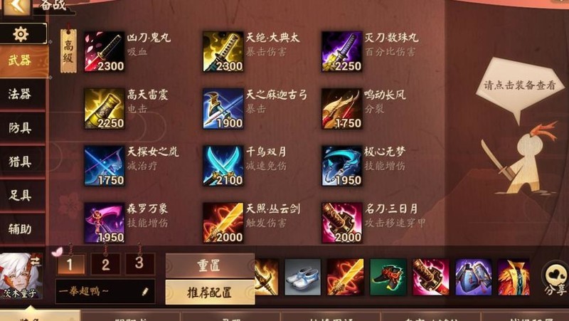 上单堆双抗,配件名刀,伤害达标。