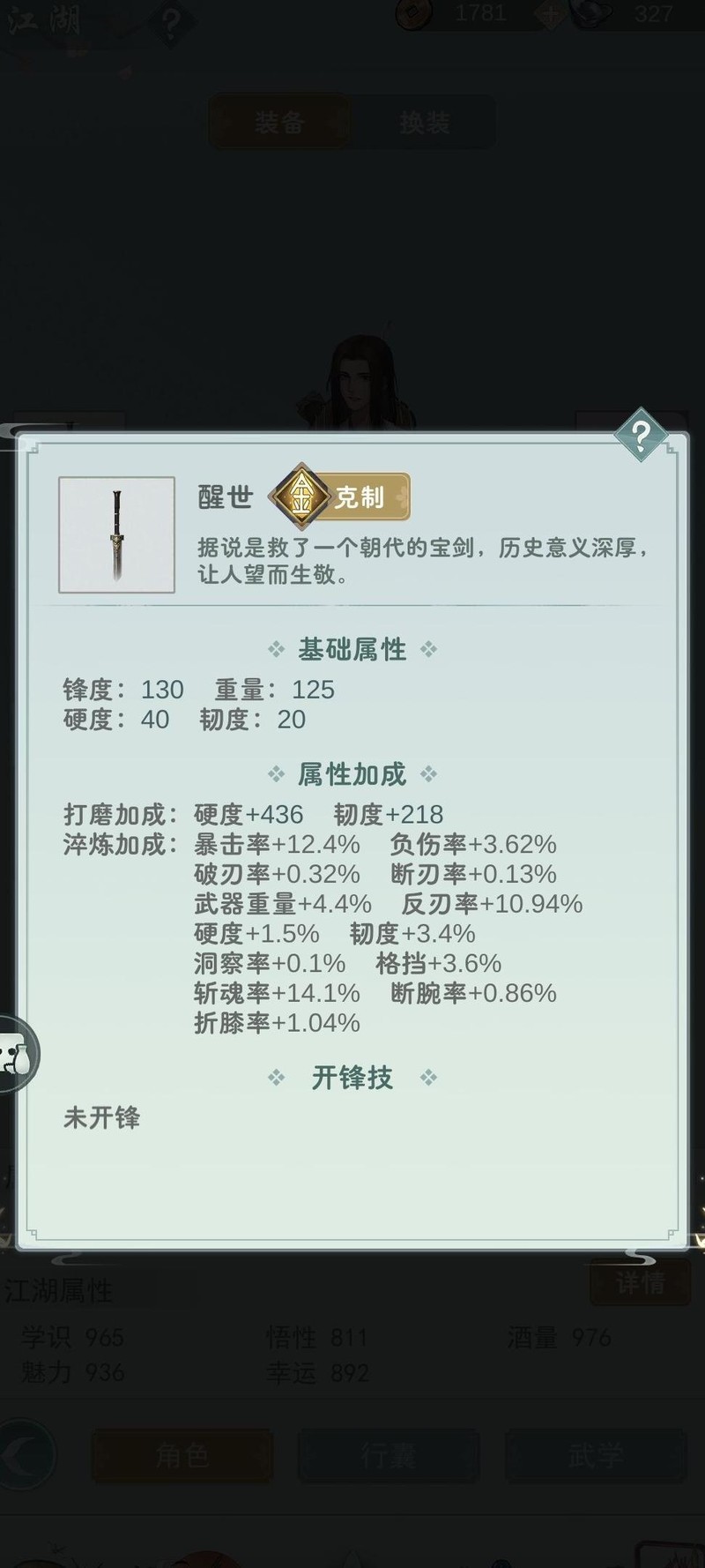 推荐武器:醒世,暴击4、反刃8、斩魂4、负伤4,其余属性齐全。