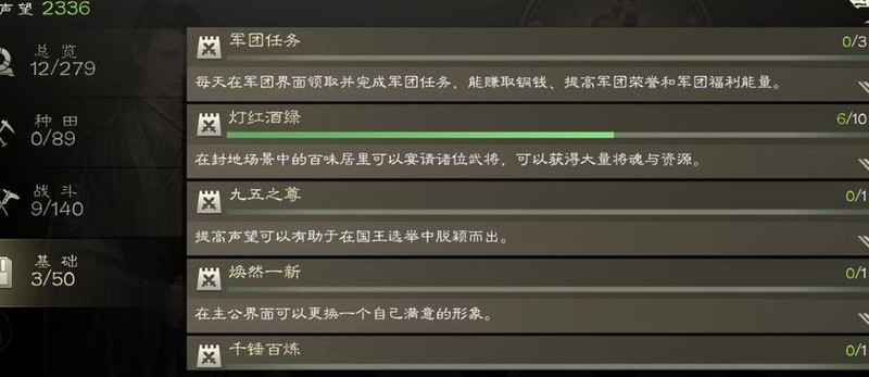 招募士兵:成功招募指定数量的三类兵种即可赢得声望奖励,对各位征战沙场的主公而言,此目标定能轻松实现。