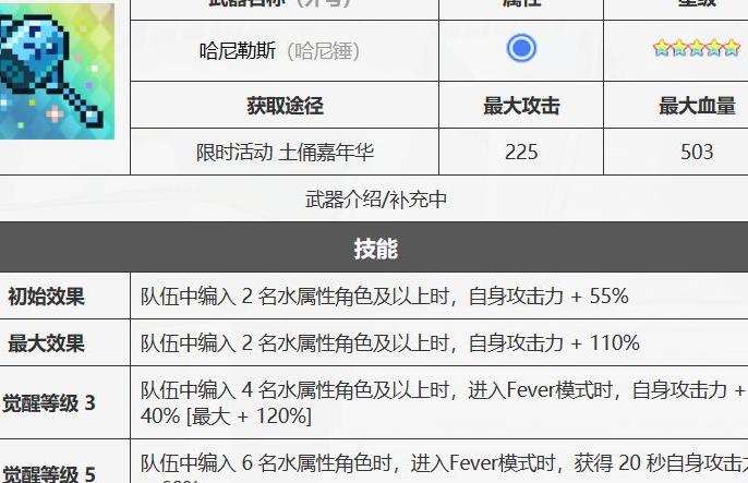 水属性的发热武器虽具爆发力,但其暖机次数与追求快速输出的特性不符,通常战斗结束前难以多次进入发热状态,因此默认视为无法触发额外加成。