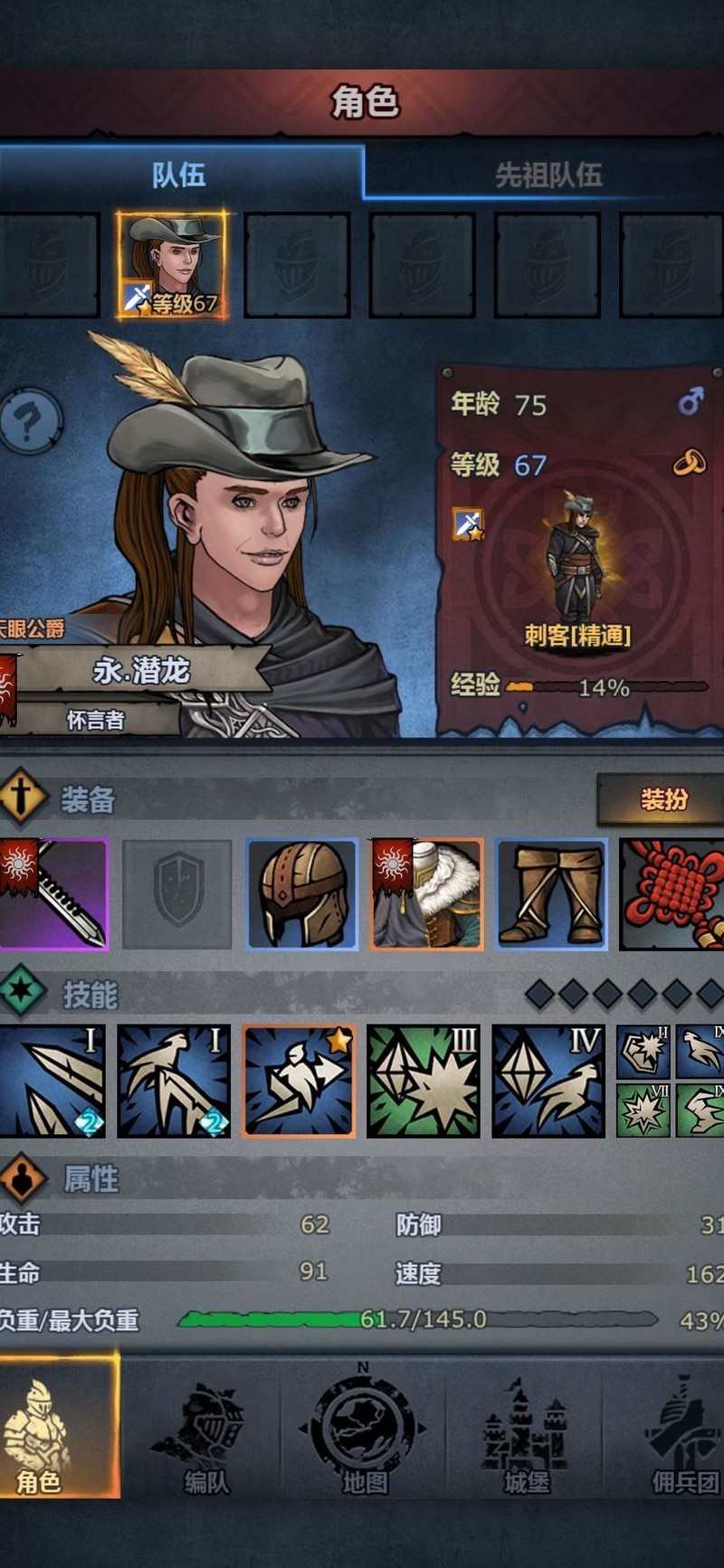 技能组合:暴击连斩、疾速位移、嗜血追击、闪避反击。