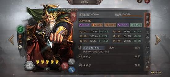 黄忠的属性与其他五虎上将差距较大,兵种适应性也不匹配,难以组成3S适性队伍,因此在五虎羁绊阵容中通常不会被选用。