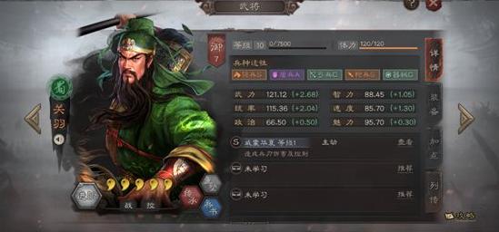 关羽位列武庙六十四将之一,在同代七人中脱颖而出。作为五虎上将之首,他在游戏中拥有极为出色的四项基础属性,统率、武力与速度均属顶尖,智力也达到合格水准,综合实力强劲。其兵种适应性广泛,使其能在多种阵容中胜任主力角色。自带战法威震华夏堪称三战顶级技能之一,不仅能依托关羽高武力打出可观伤害,还能凭借高速度抢先出手施加控制效果,实现有效控场。该战法唯一短板在于发动概率偏低,且需准备一回合方可释放,存在一定不确定性。