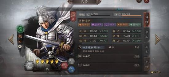 陈寿曾将他的才能与滕公夏侯婴相提并论。赵云不仅武力出众、统率卓越,速度与智力也达到了合格水准,仅从基础属性来看,便足以证明其实力不俗。然而真正让他脱颖而出的,是其自带战法一身是胆。这一战法堪称三战中最强之一,不仅能进一步提升赵云本就优秀的属性,还能为其提供持续八回合的洞察效果,使其完全免疫控制类技能。正因如此,赵云在战场上表现极为稳定,成为众多阵容中不可或缺的核心武将,深受玩家信赖与推崇。