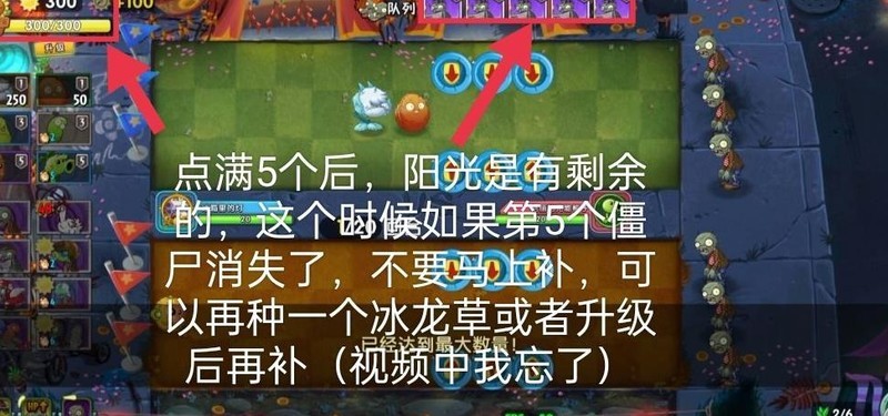 开局阶段,先在中间行放置冰龙草,前方用爆炸坚果保护。随后在其后方依次种植一列冰龙草和一列坚果,阳光充足时可扩展为两列冰龙草。初期种植1至2株冰龙草后,优先考虑升级,特殊情况再补种植物。