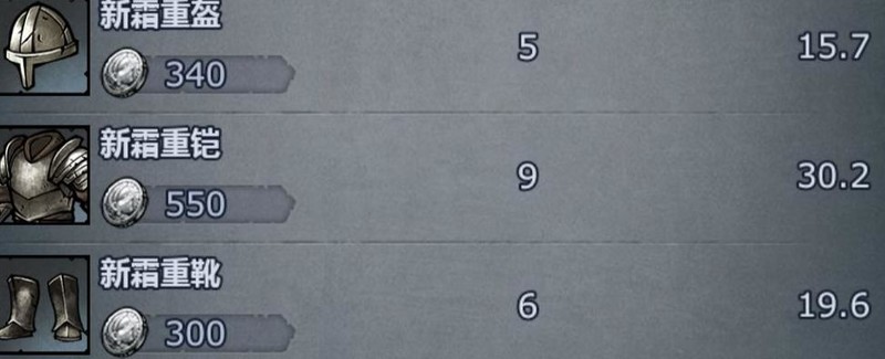 重甲枪兵等级不限,于银风堡购入新霜三件套并全数强化至+1,总计获得25点防御。