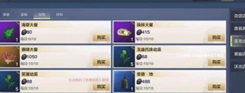 在妄想山海中,海草大餐可通过貔貅台商店获取,在紫幽、墨箴和沃炎三家店铺的杂货栏中均有出售。该食物专为人鱼第三阶段成长所需,达到此阶段后必须以海草大餐喂养才能继续发育。每家商店每日限购10份,购买时需使用对应店铺指定的货币。海草大餐的成熟周期为24小时,与千月进入第三阶段后的生长需求一致。玩家若打算培养人鱼,需提前准备充足的委托代币,三种类型的委托石均可用于兑换,建议日常积累以免短缺影响培育进度。