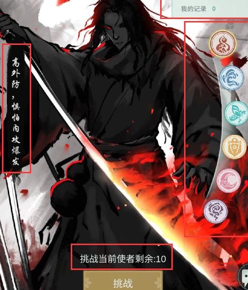 左侧描述为各NPC的独特属性,可根据其特性选择适合当前武学搭配、更易打出高伤害的目标进行挑战。