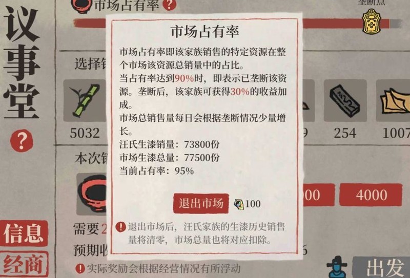 一级家祠每次最多只能出售1000资源,数量有限且耗时较长,难以实现快速垄断。为提升效率,建议尽快升级至二级或三级家祠,以增强资源销售能力,加快市场控制进程。