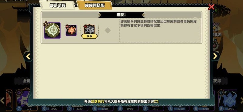 游戏推荐搭配很巧妙,烈焰巫师与毒咒巫医主攻后排,部落哨兵标记前排敌人,实际效果却显得有些多余。