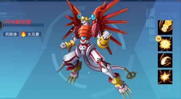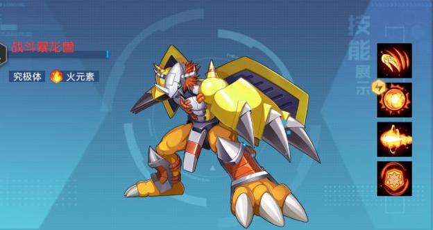 凤凰兽可与战斗暴龙兽配合,具备群体攻击能力,并能显著增强火属性数码兽的伤害输出。