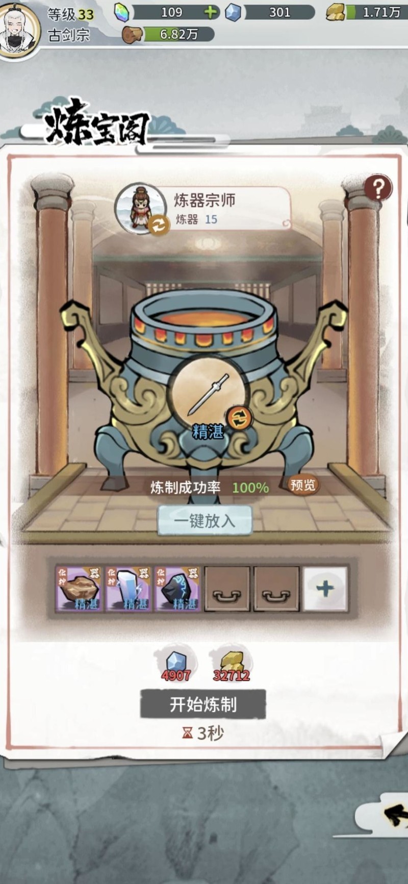 新手炼器切忌一键投放材料,需谨慎操作。