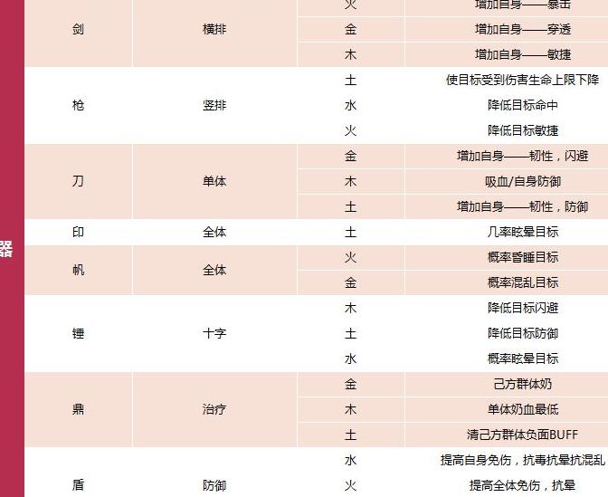 五行属性对应各自独特效果