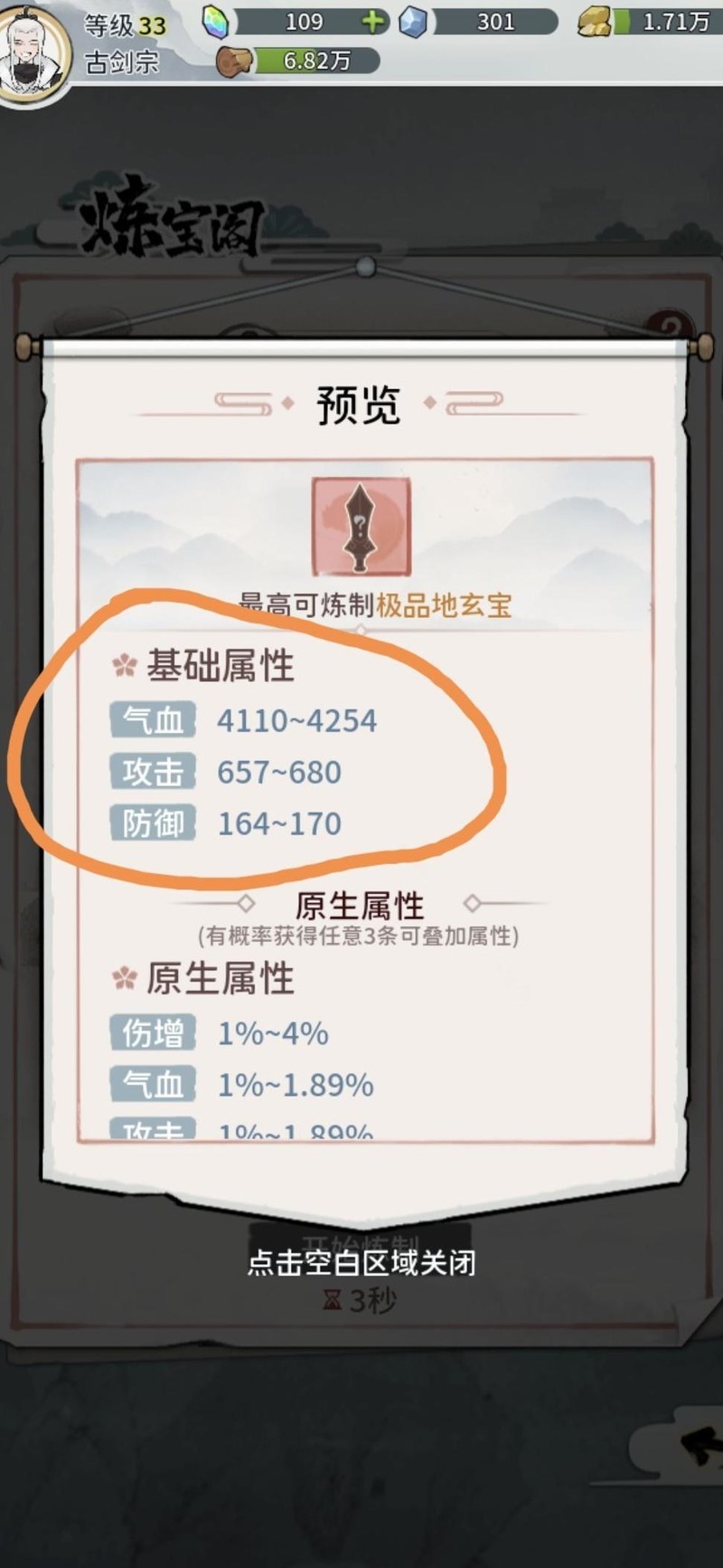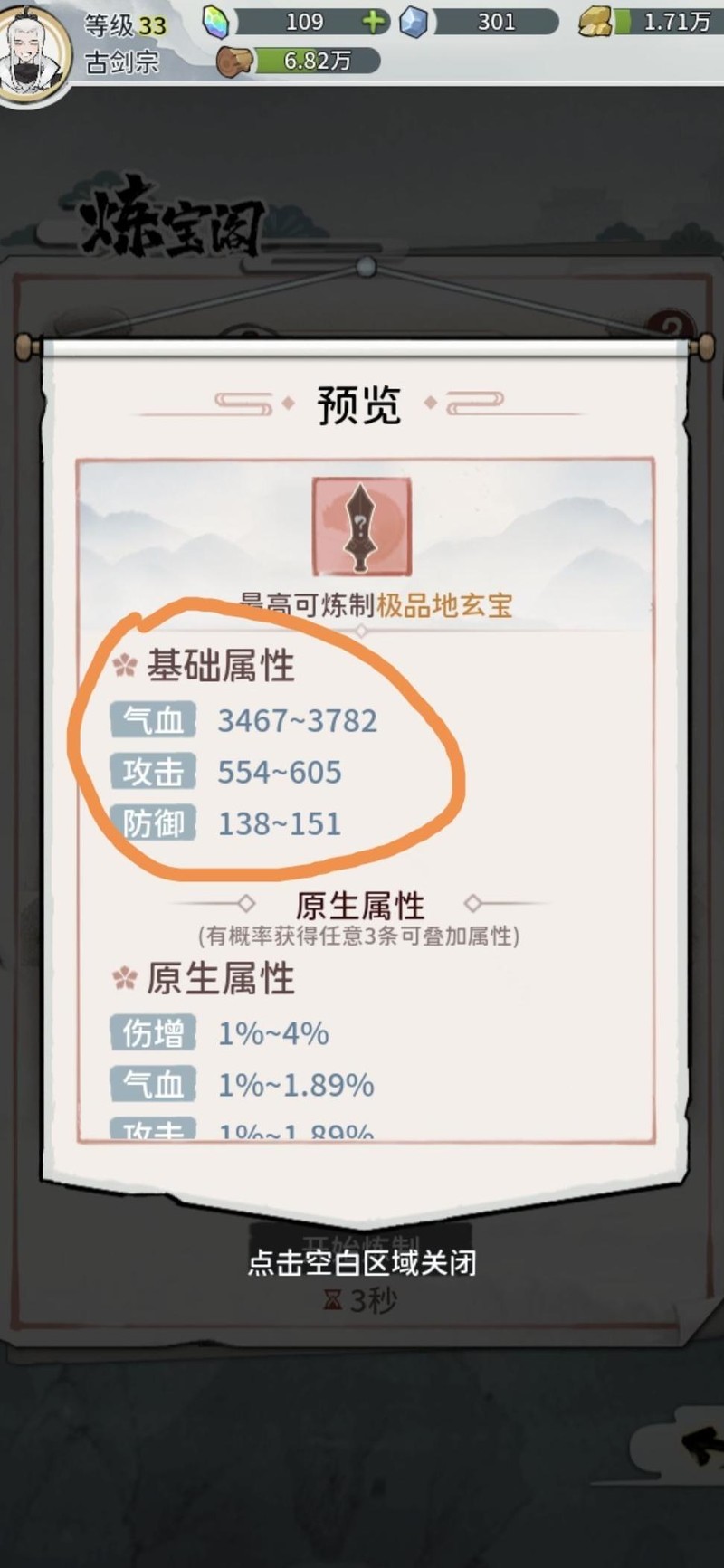 放入三个化神材料,武器属性上限可达八十。