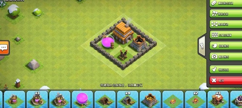 在防御塔周围随意布置一些建筑以减缓敌人推进,根据经验,经济类建筑最好置于火力覆盖较强的区域,更利于防守和资源保护。