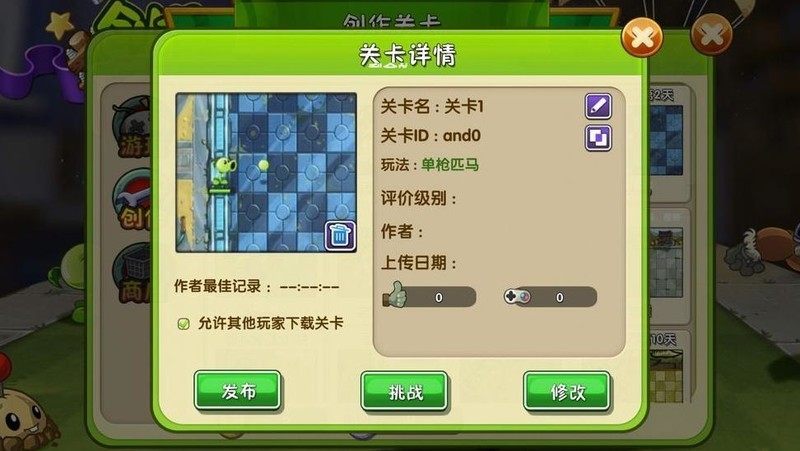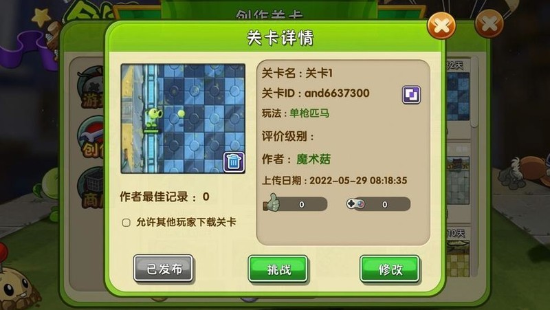 设置好僵尸与事件后退出,右键点击第二关卡选择挑战,即可发现异常情况。