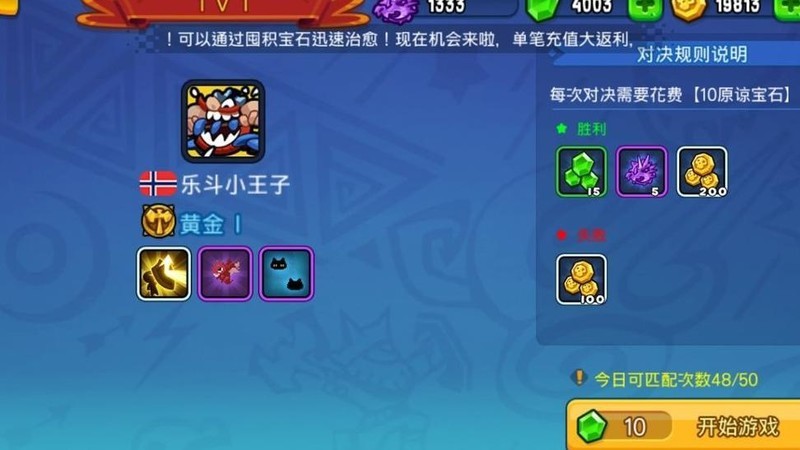 每日可匹配50次,若全部取胜,最高可额外获得250颗原谅宝石、250枚龙币和10000金币,奖励相当丰厚。