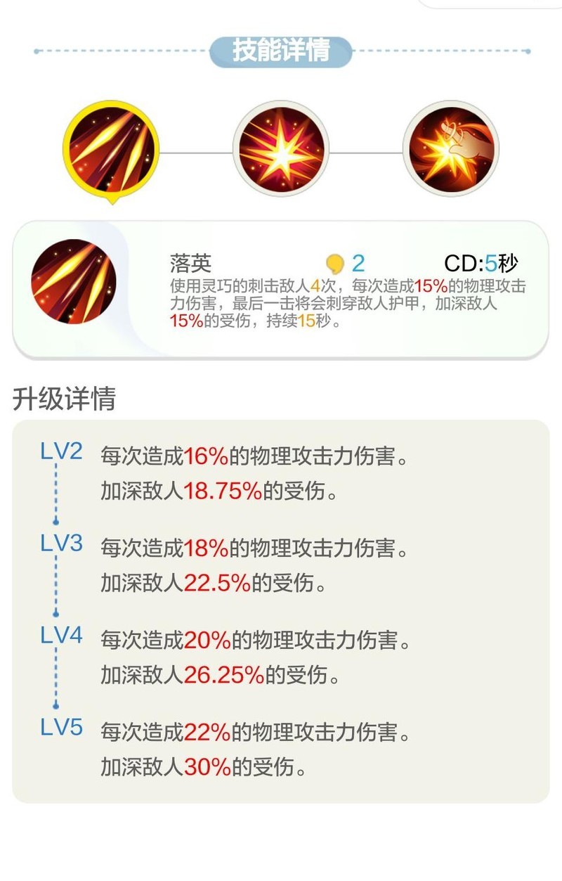 一技能落英为伤害技,附带增伤效果,类似火龟被动的机制。