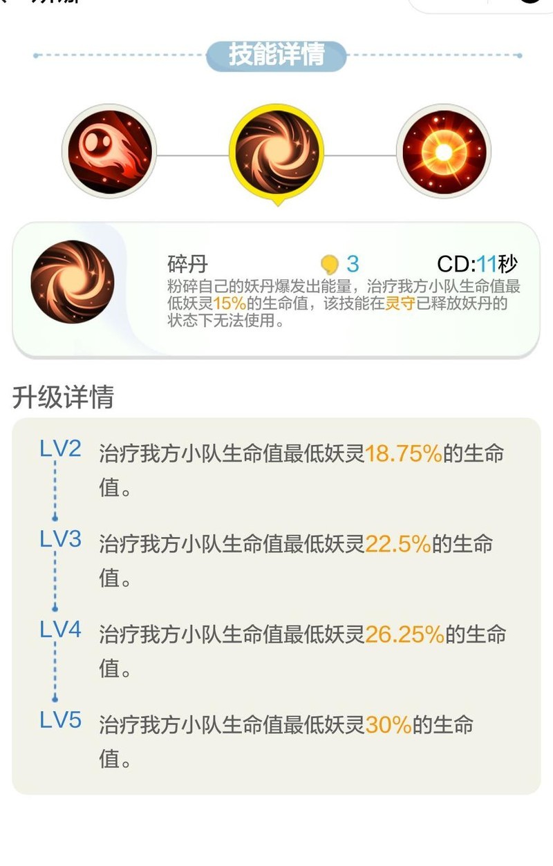 二技能碎丹满级后可瞬间回复30%生命值,配合瞬疗效果,堪称可靠的治疗担当。唯一限制是释放一技能时无法使用,否则治疗量未免太过强大,几乎无可匹敌。