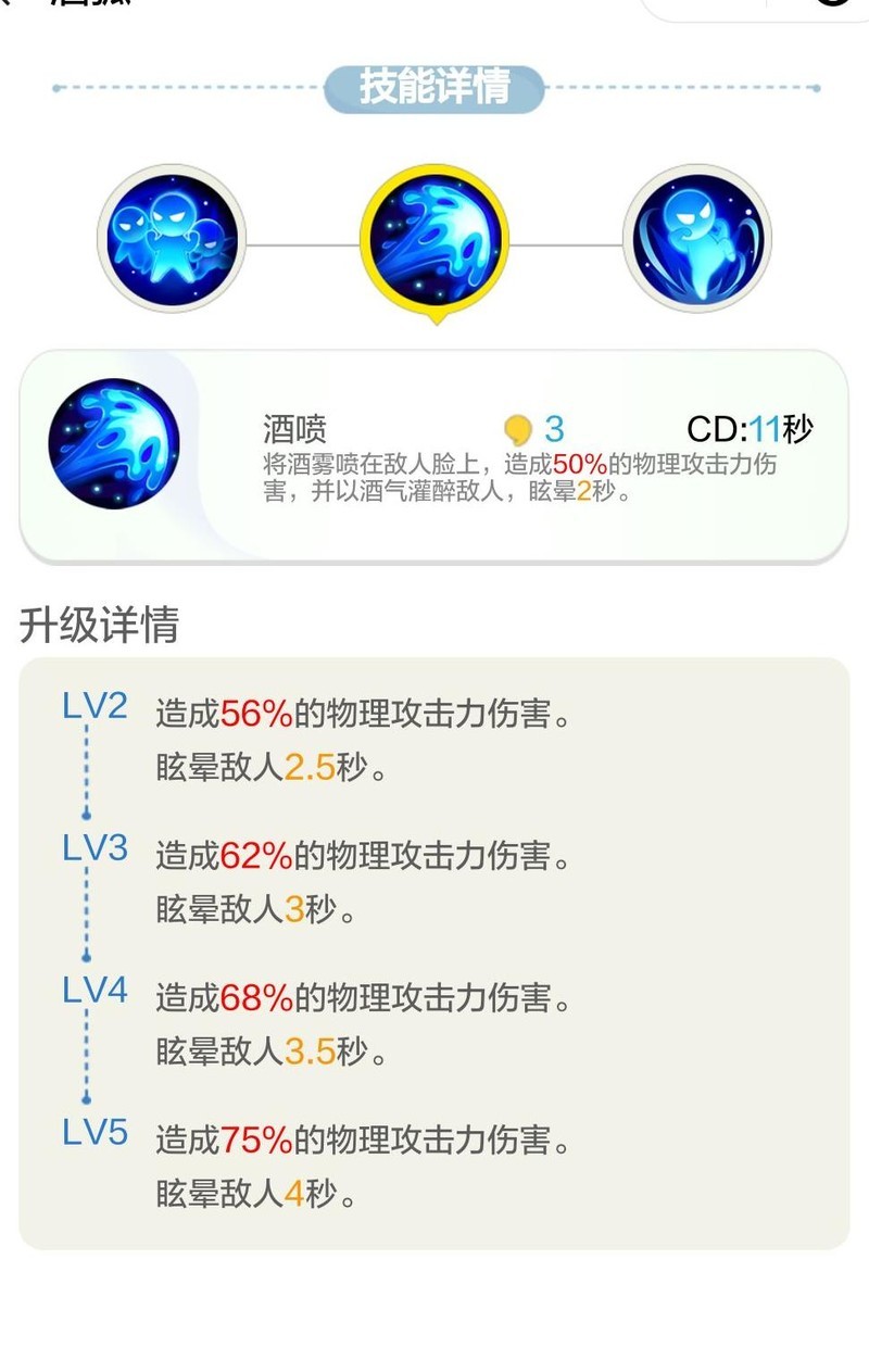 二技能酒喷可造成高额伤害并附带长达4秒的眩晕效果,满级时表现亮眼。尽管基础倍率不高,但实际输出超过一技能连环巴掌。不过技能冷却时间较长,限制了使用频率,整体较强但非核心,实战中需合理把握释放时机。