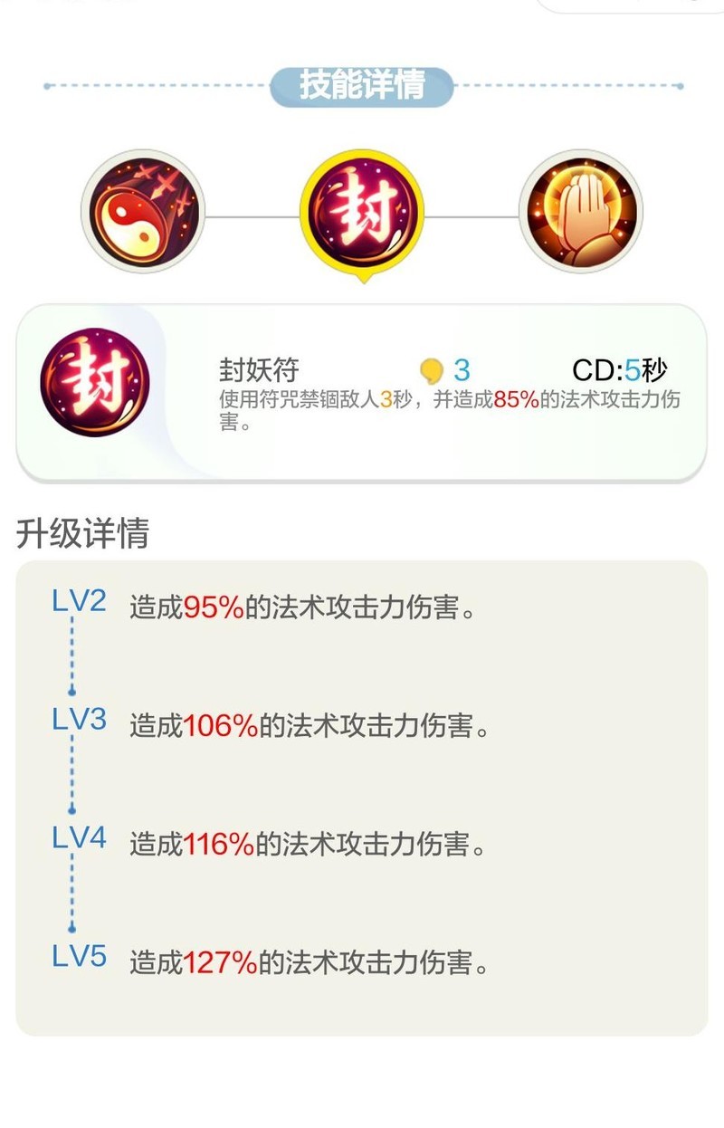 二技能封妖符是黄九郎立足擂台的重要资本之一,冷却仅5秒,可对目标施加3秒控制效果。该技能兼具灵活性与压制力,打不过可迅速脱身,打得过则立即封锁对手。配合其他拥有锁定能力的伙伴,能实现连续控场、无缝衔接。虽技能倍率不低,但相较一技能仍略逊一筹。同为120%倍率,婴宁因释放较慢、伤害持续,实战中难以媲美。